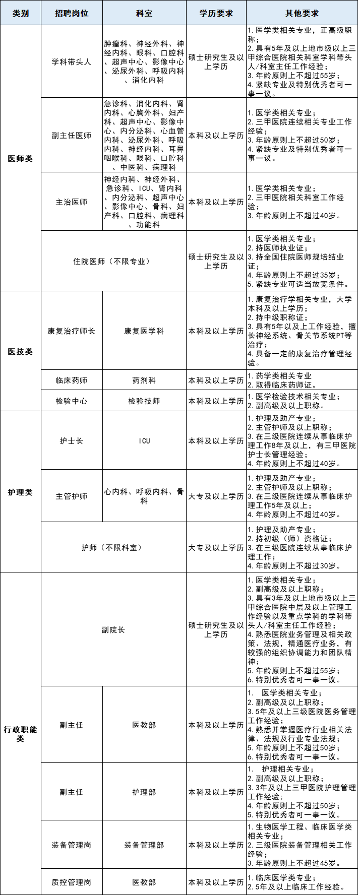 因医院发展和工作需要,现面向社会公开招聘以下岗位: