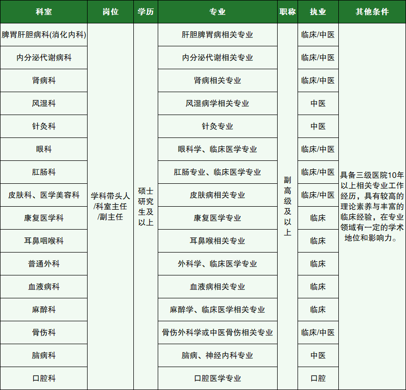 学科带头人、科室主任、副主任