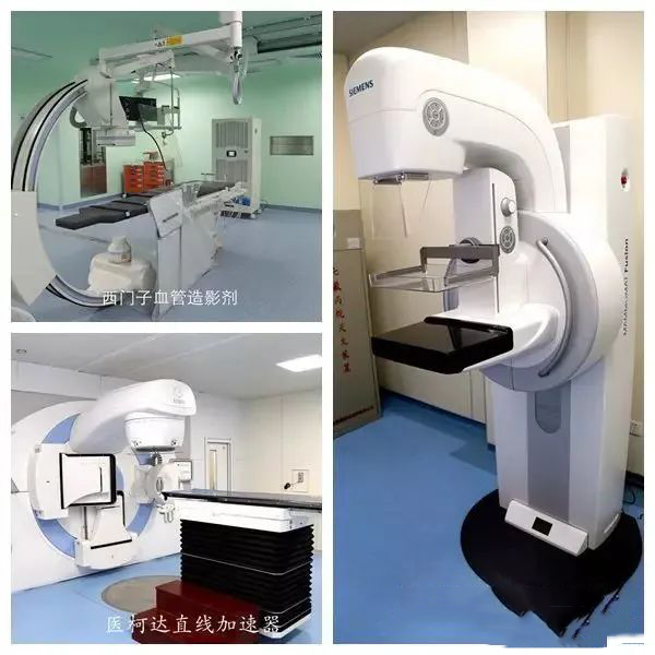 德国西门子派特 CT(PET-CT)、西门子核磁共振(MR)、西门子心脏双源心脏 CT、西门子血管造影机(DSA)西门子大孔径 CT、西门子数字胃肠机、西门子数字乳腺机(钼靶)、瑞典直线加速器、超级伽玛刀、荷兰心脏彩超、西门子全自动系列生化检验流水线等大型设备 160 余台。