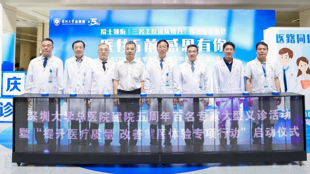 2023.6.27以建院五周年为契机,由院士领衔、院内百余名专家出诊,开展大型公益义诊活动。同步启动「提升医疗质量 改善就医体验」专项行动,全流程提升患者满意度,做鹏城百姓的健康守门人。