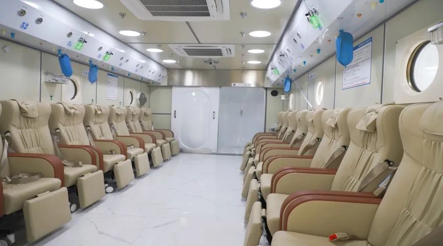 我院高压氧舱内配置专业医护人员,同时配备各类监护抢救支持等设备,便于在舱内进行抢救、监护、输液等操作,随时保障重症患者的安全。
