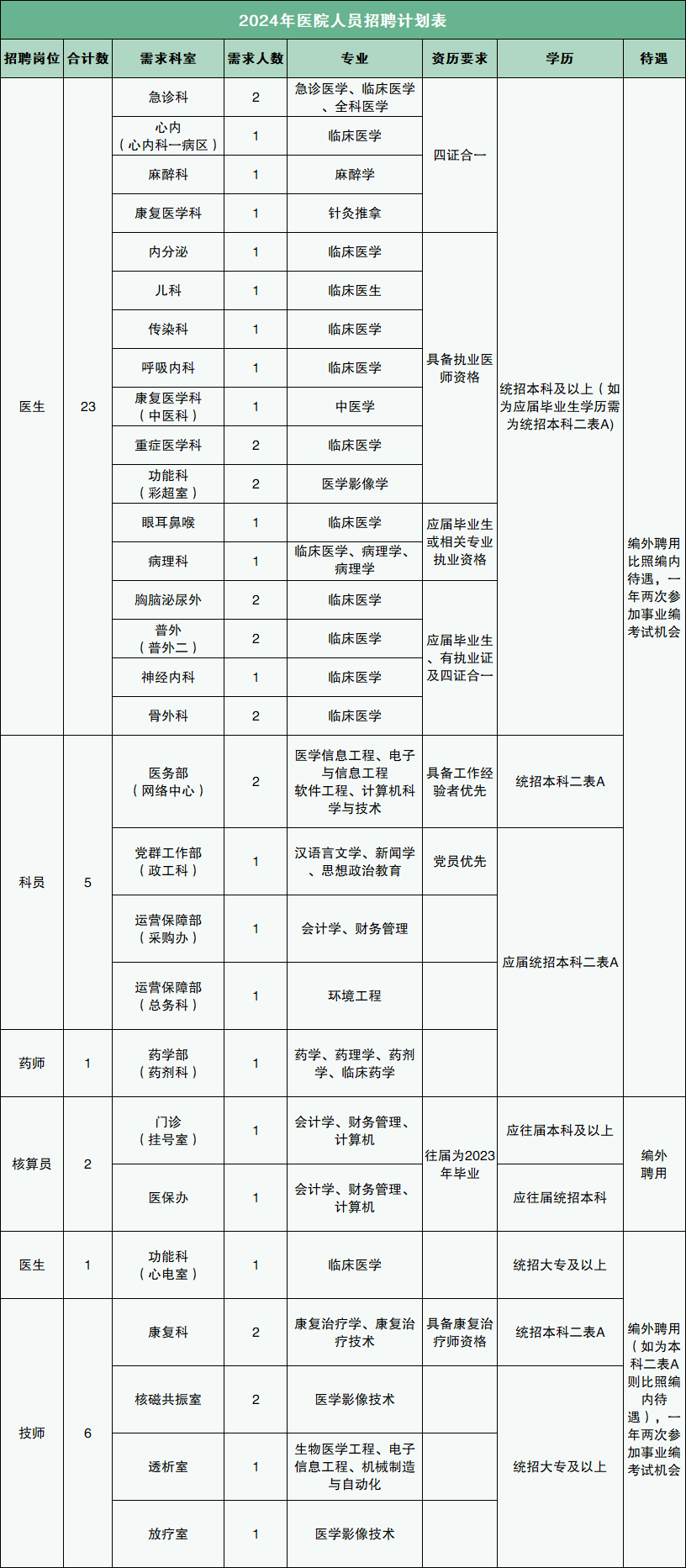对于临床、医技引进的第一学历为统招本科的,并「四证合一」(执业证、规培证、毕业证、学位证)的人才,年龄在 30 周岁及以下,给予安家费 15 万元。