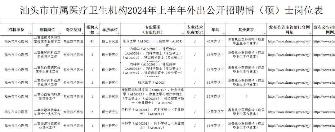 招 169 人!汕头市市属医疗卫生机构 2024 年公开招聘
