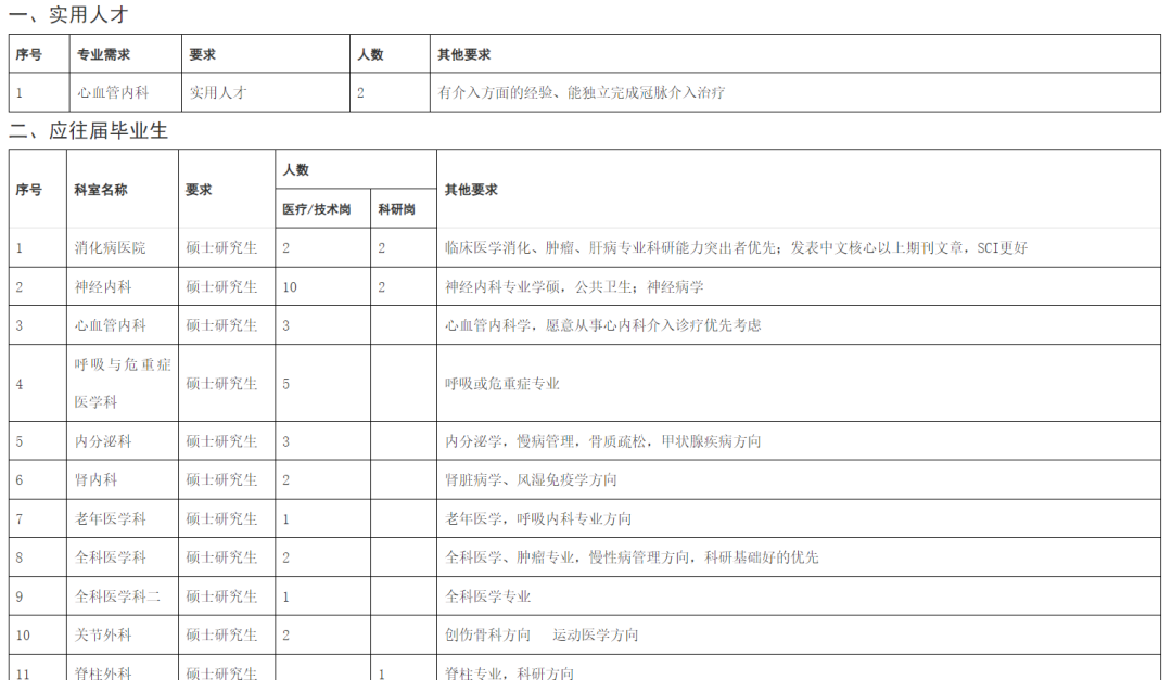 应、往届硕士研究生,第一学历为全日制本科,取得相应学位证,并取得相关专业技术资格证书,医疗诊断类需取得住院医师规范化培训证书。
