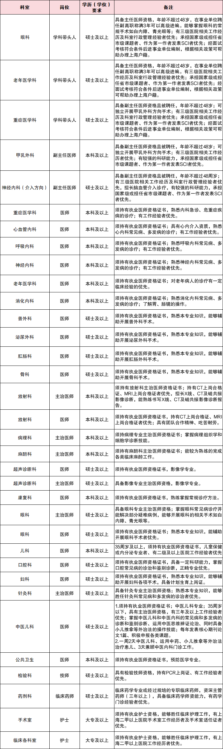 事业编制(满足条件可直接入编)| 公立医院本科起聘(护理大专起)