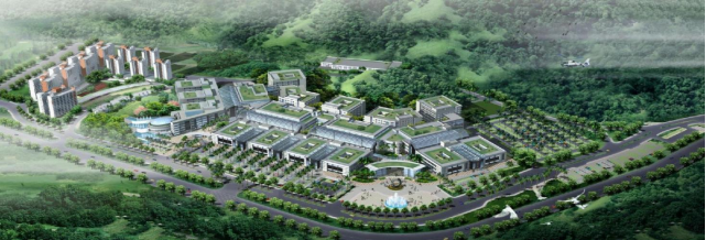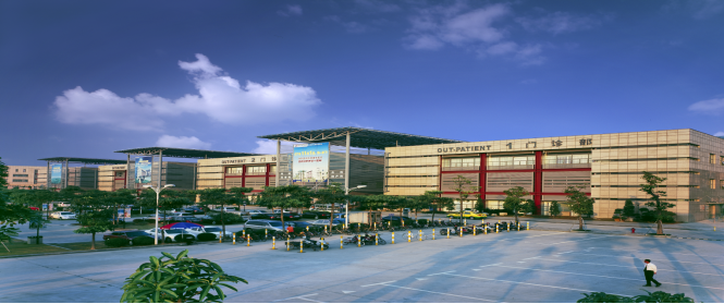 医院依山造势,环境优美,占地 563 亩,建筑面积 39.8 万平方米,其中医疗区 33.8 万平方米,3 万平方米的门诊部日可接待近万名门诊病人,手术室 15 间,规划床位 2,006 张,开放床位 1,500 张,职工约 1,870 人,是一所大型生态式三级甲等医院。