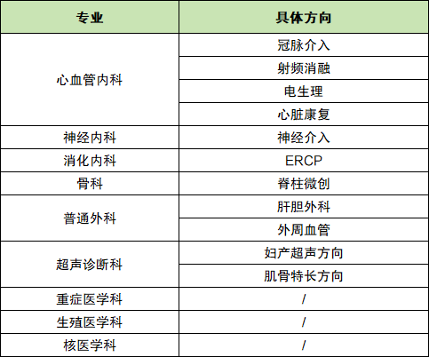 心血管内科、神经内科、骨科、普通外科、生殖医学科、核医学科。