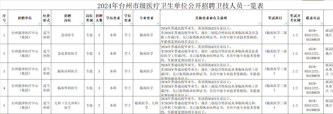 招 173 人!浙江台州市市级医疗单位公开招聘