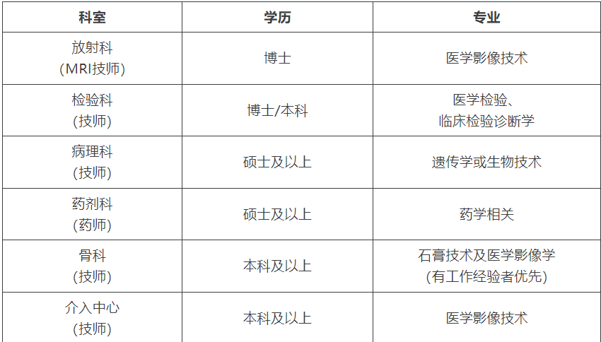 招聘医护技研人员若干名,详见下方链接。 点击查看完整招聘岗位