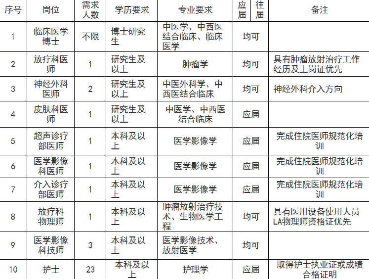 本次计划招聘工作人员若干名,包括医师、护理人员、科技人员等岗位,详见下方链接。 点击查看完整招聘岗位