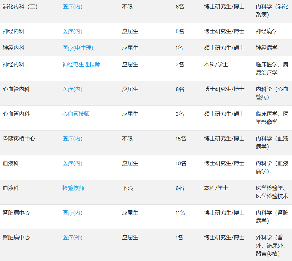 此次公开招聘 89 个岗位 843 人,包括医师、医技、护理人员、行政后勤等岗位,详见下方链接。