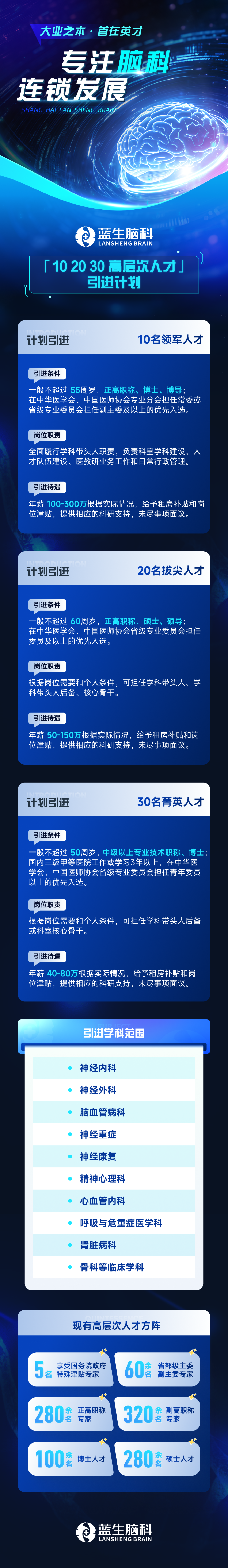 年薪 40W-300W | 上海蓝生脑科 13 家连锁单位全国纳贤