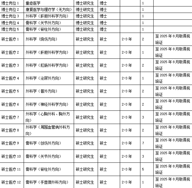 具有与招聘岗位要求相适应的学历学位、专业、年龄和技能条件;医疗岗位职工须在签正式劳动合同前取得《住院医师规范化培训合格证书》或由学校或规培基地出具的规培考试通过的证明并附合格成绩单。