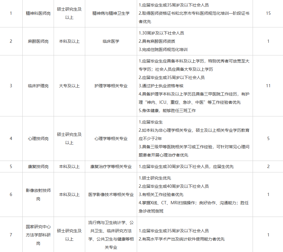 医护技研均招!首都医科大学附属北京安定医院 2025 年工作人员招聘