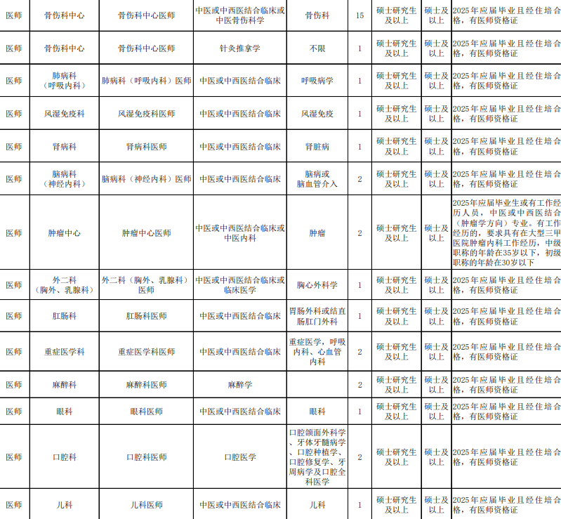 佛山市中医院是一所集医、教、研及康复于一体的三级甲等现代化大型中医医院,现将开展 2025 年工作人员招聘计划。