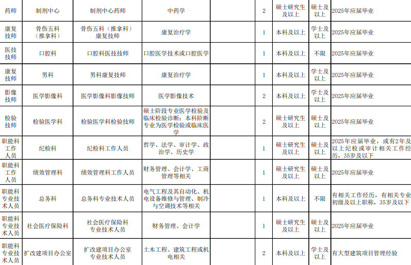 本次计划招聘工作人员 112 名,包括医师、药师、技师、护理人员等岗位,详见下方链接。