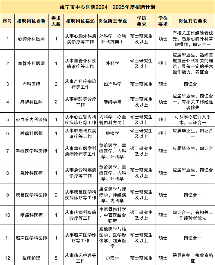 点击 >> 「 咸宁市中心医院/湖北省人民医院(武汉大学人民医院)咸宁医院 」, 在丁香人才上查看全部在招岗位 。