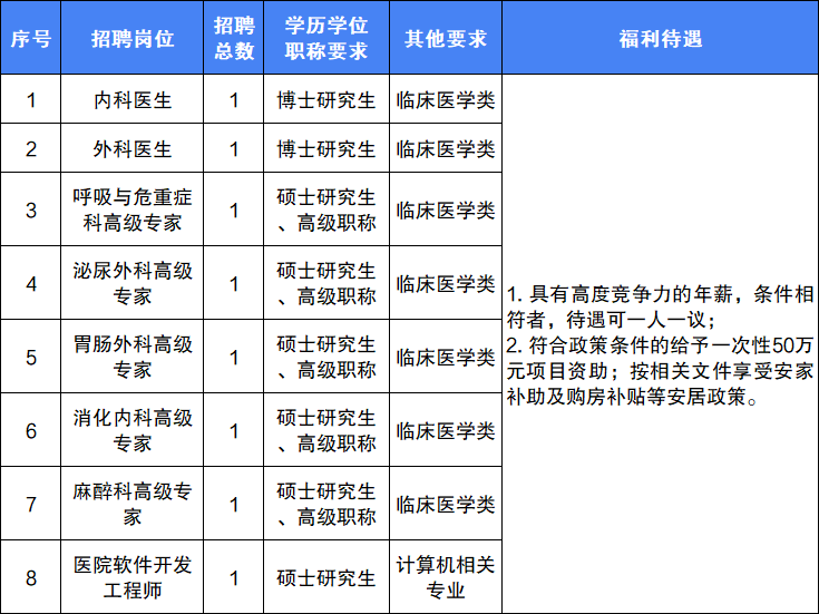 专本硕博人才均招 招满即止 | 公立三级医院诚邀优秀人才加入