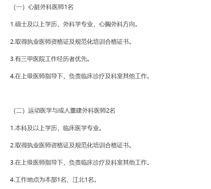 6. 有三甲医院工作经历者优先。服 从科室安排,工作地点在医院本部、江北、南部院区。