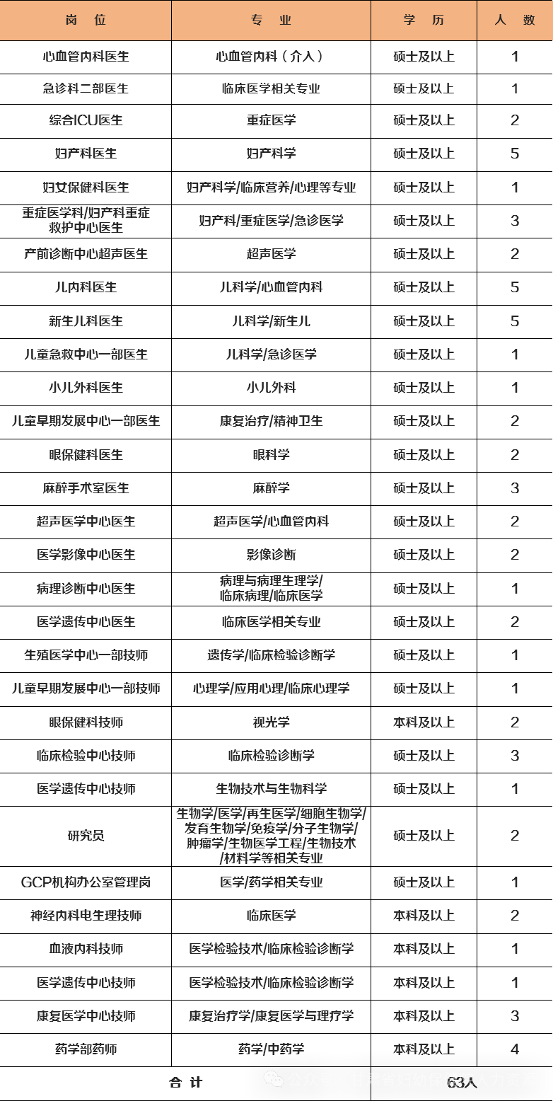 (2)取得医师资格证或相应岗位从业资格证,重症医学科/妇产科重症救护中心医生(急诊医学专业),职称条件为中级及以上;